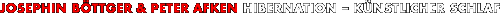 Der Schlaf als verborgene KulturproduktionsstŠtte: In einer weiteren kŸnstlerischen Kollaboration zwischen Josephin Bšttger und Peter Afken wird im Westwerk ein Forschungslabor errichtet, das Erkenntnisse Ÿber den menschlichen Schlaf und seinen Sinn gewinnen will. Eine lo-tech induzierte Hibernation Ð konstruiert, gemalt, gefilmt, projiziert Ð die Traumwelten irgendwo zwischen Alchemie, Science Fiction, Surrealismus und Sandkasten hervorrufen wird. Das Labor ist ein tatsŠchliches Work-in-Progress, wobei jeder Besucher auch an der Erhebung teilnehmen kann.