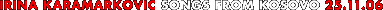 | Irina Karamarkovic interpretiert in zeitgenšssischem Stil (Jazz, Funk, Bossa Nova) traditionelle Lieder aus dem Kosovo. Ihr Gro§vater, ein Komponist, und ihre Mutter, eine klassische Violinistin, haben die Lieder gesammelt und notiert. In der Halle: Fotoausstellung Georg Knoll ÈEine Reise durch Ex-JugoslawienÇ | |